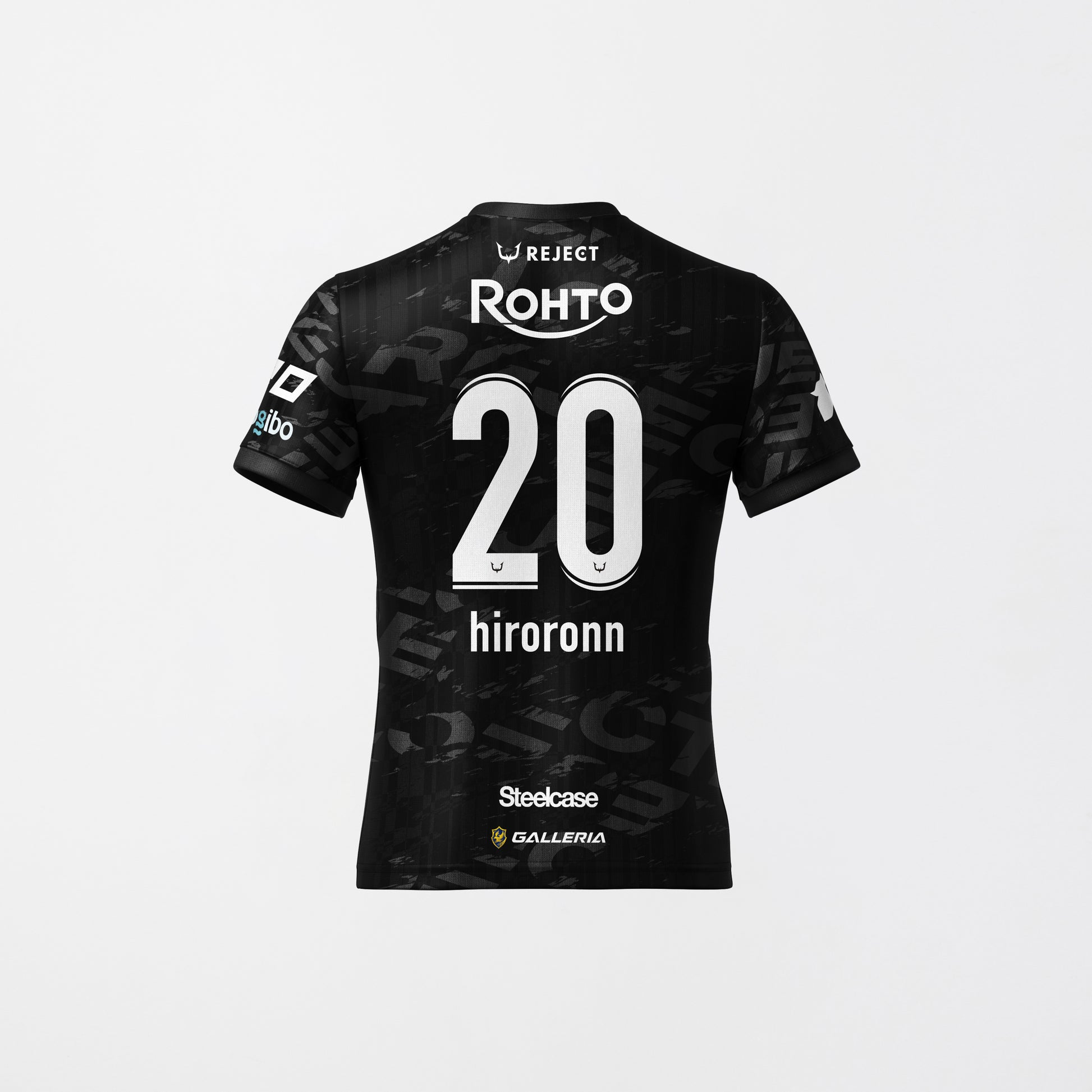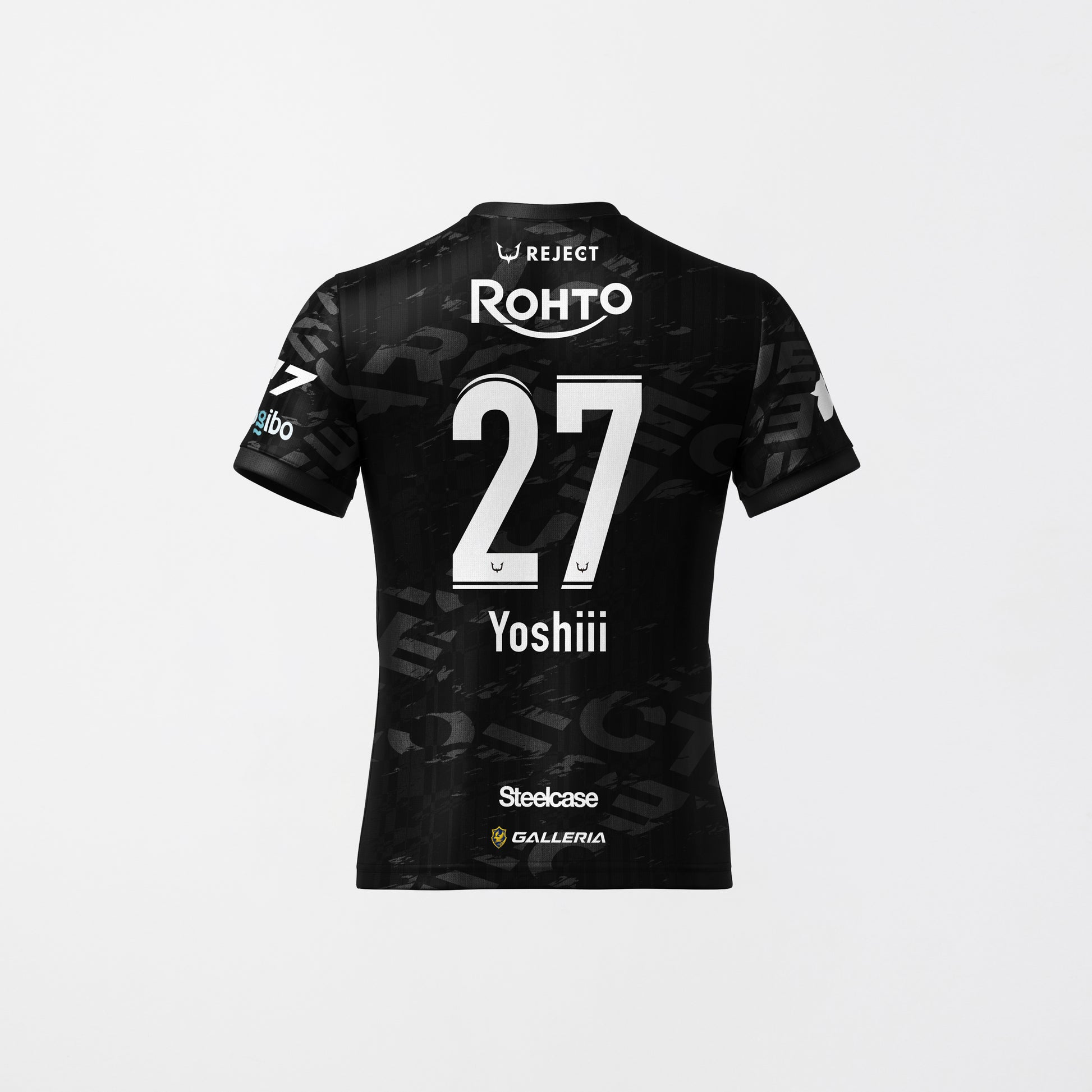 選手名がプリントされた黒を基調としたユニフォームです。